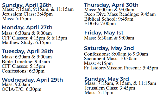 Divine Mercy Sunday Schedule